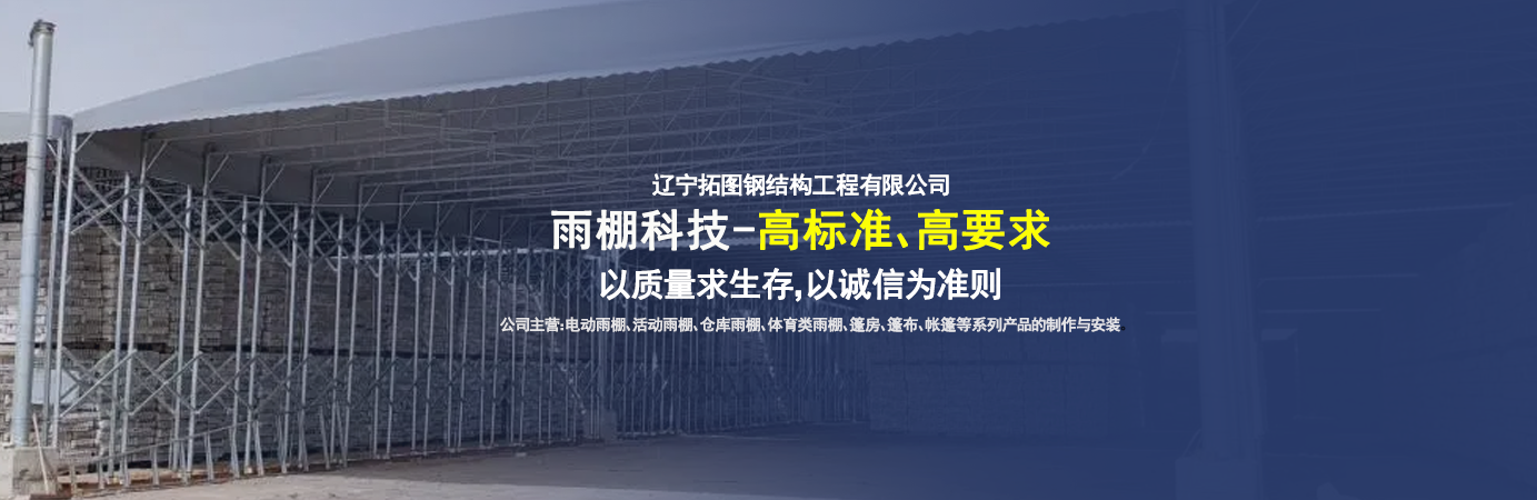遼寧拓圖鋼結(jié)構(gòu)工程有限公司是一家專業(yè)從事推拉篷設(shè)計、制作、安裝、使用、維修的綜合性公司。公司主營:電動雨棚、活動雨棚、倉庫雨棚、體育類雨棚、篷房、篷布、帳篷等系列產(chǎn)品的制作與安裝。 遼寧拓圖鋼結(jié)構(gòu)工程有限公司堅持以市場為導(dǎo)向,以科技創(chuàng)新為動力,以質(zhì)量求生存,以誠信為準則,倡導(dǎo)求實、進取、創(chuàng)新的企業(yè)精神。“科學(xué)的管理、嚴謹?shù)脑O(shè)計、 的制作安裝、嚴格的質(zhì)量檢測、良好的后期服務(wù)成就企業(yè)的信譽,為您提供優(yōu)質(zhì)服務(wù)。 遼寧拓圖鋼結(jié)構(gòu)工程有限公司傾力于開發(fā)應(yīng)用三維空間結(jié)構(gòu)與新材料的結(jié)合,將廣告藝術(shù)視覺表現(xiàn)形式與張力膜材科學(xué)的結(jié)合,推出多彩推拉蓬,依靠先進的科學(xué)技術(shù),將推拉蓬建筑表現(xiàn)形式無限延伸,立志走在建筑科學(xué)的前沿,引導(dǎo)建筑時尚潮流,我們的目標是使推拉蓬建筑在中國發(fā)展壯大。 遼寧拓圖鋼結(jié)構(gòu)工程有限公司憑著極強的事業(yè)熱情和豐富的專業(yè)經(jīng)驗以“勤勉進取、銳意創(chuàng)新、至誠至信”的精神使公司得到迅速健康發(fā)展,業(yè)務(wù)范圍遍及全國。科學(xué)的管理、嚴謹?shù)脑O(shè)計、高標準的制作安裝流程,嚴格把控產(chǎn)品質(zhì)量,熱誠的售后服務(wù)是企業(yè)競爭力的源泉。 遼寧拓圖鋼結(jié)構(gòu)工程有限公司人愿以最誠摯的態(tài)度,歡迎廣大客戶的蒞臨與溝通!愿為市場提供優(yōu)...